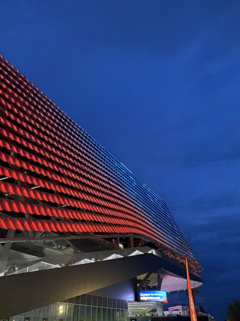 Situado en el barrio de Quatre Carreres, junto a L’Alqueria del Basket y la antigua Fonteta, el Roig Arena redefine la zona: donde antes había tráfico y descampados, ahora hay diseño, luz y futuro.