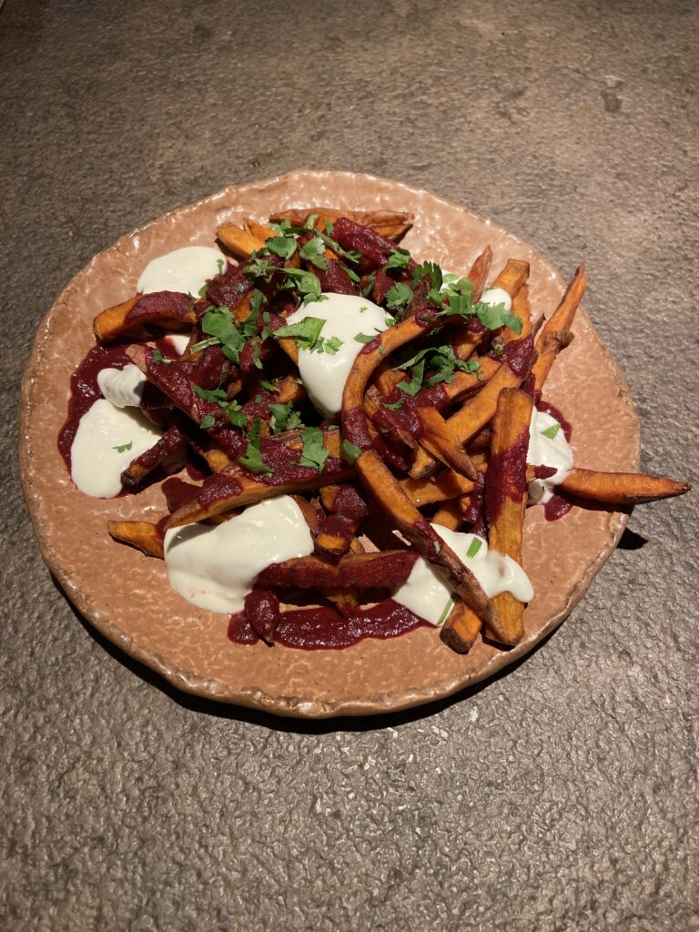 Boniato chips: Un best seller indiscutible que se acompaña con su famoso kétchup de remolacha y alioli casero.